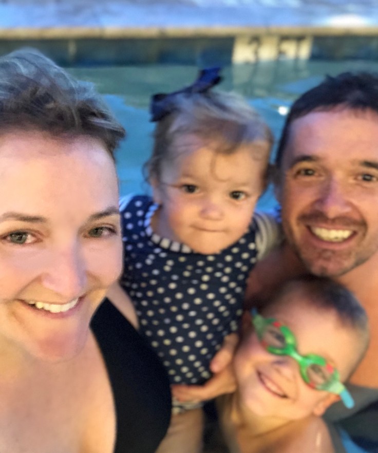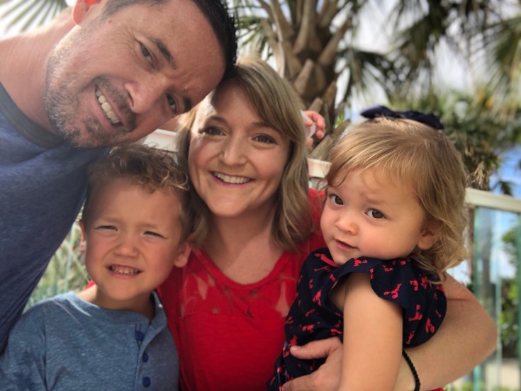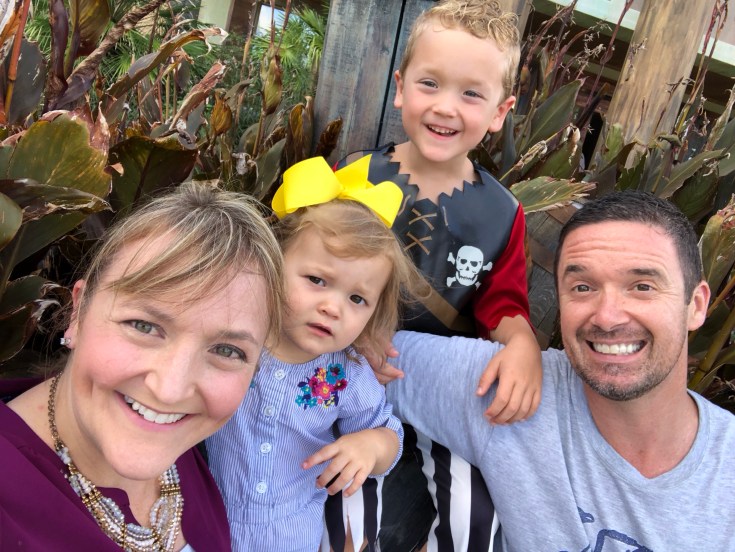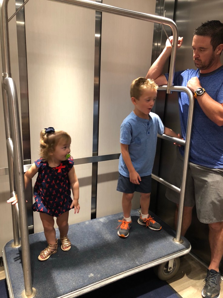 Then I took inventory, we were disheveled, to say the least. We all had bed hair. Alex looked like she had a rats nest on her head. Both kids were still in pjs with wet soaked diapers from the night before. And we all had the biggest grins on our faces! Let this vacation begin!