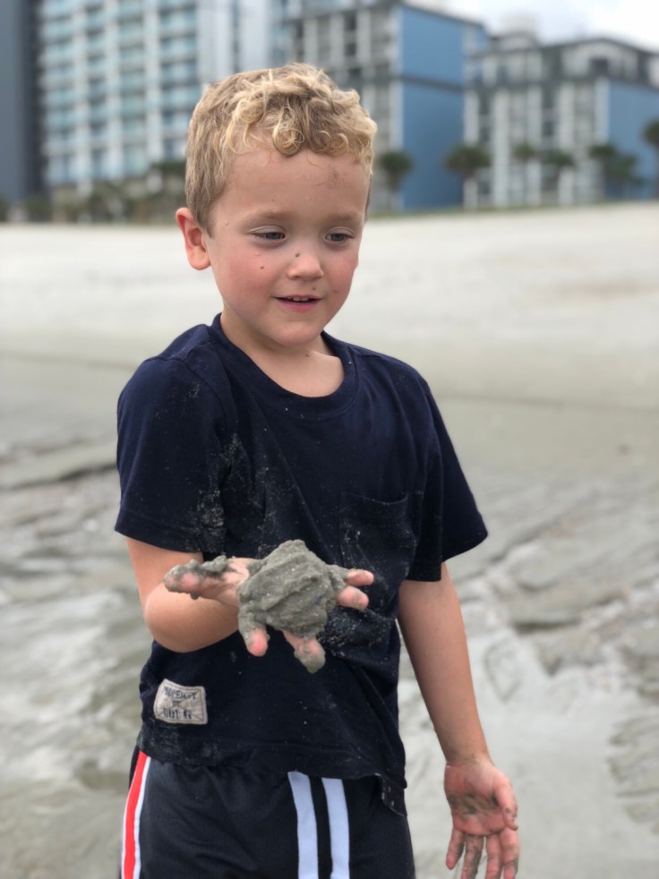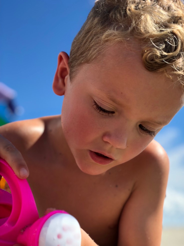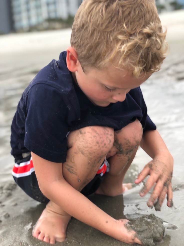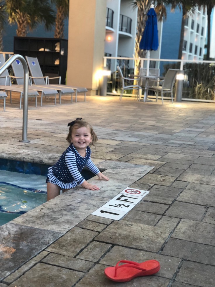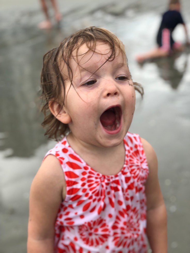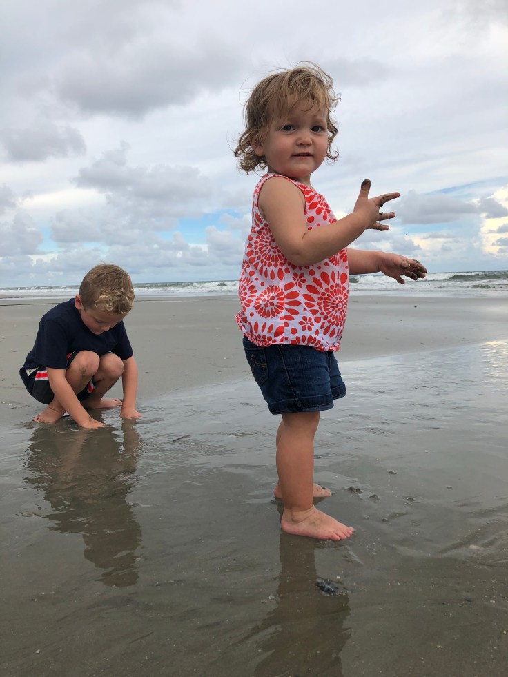 We head back out to the pool. But the hotel closes at noon. We could continue to stay in our suite but we had to leave the pool. So after nap we headed out to the beach. It was virtually a private beach. The water was not safe to get in so I thought we would just we walking the shoreline. So both kids were fully clothed without swimming suits. Get ready for this #Momfail moment. Both kids end up drenched and covered in sandy goop!