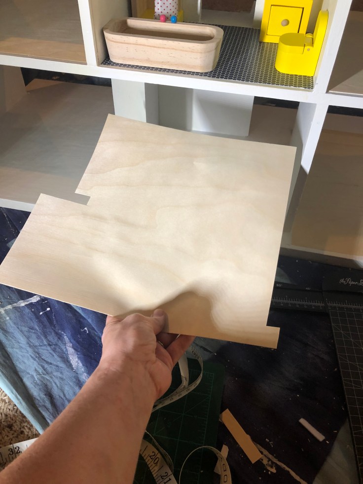 Then I installed the wood floor. I used adhesive Birch wood sheets by Artful Inspirations. They were amazing. Easy to cut, easy to install, and I like the look. I used my paper cutter to cut them. It made clean sharp corners! I also purchased these from Amazon.