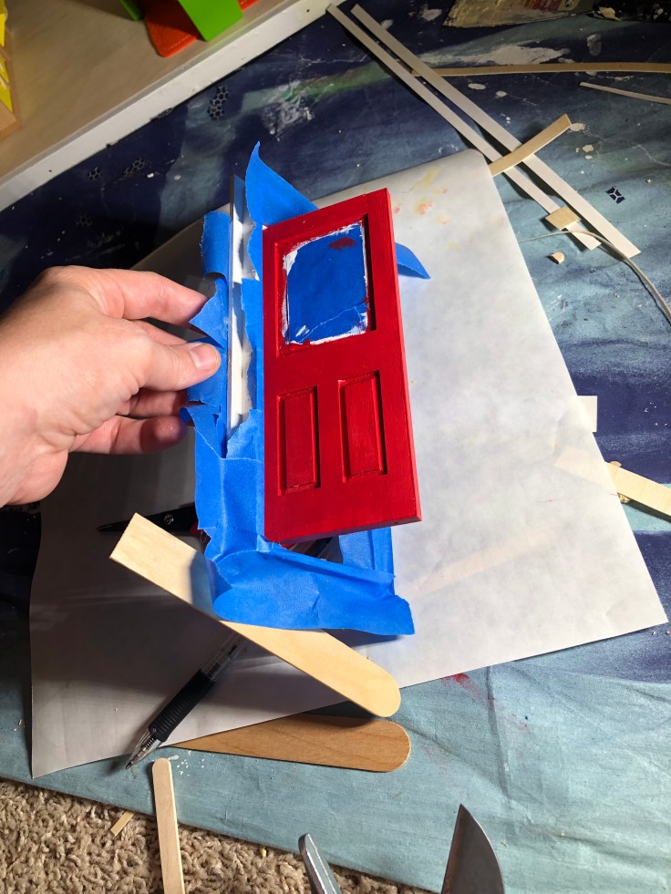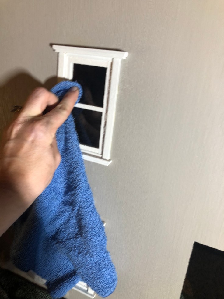 The window installation was a bit tricky. After all the paint my windows didn’t fit in the holes. So I sanded them down first. Then glue, dry, clean, and Voila!