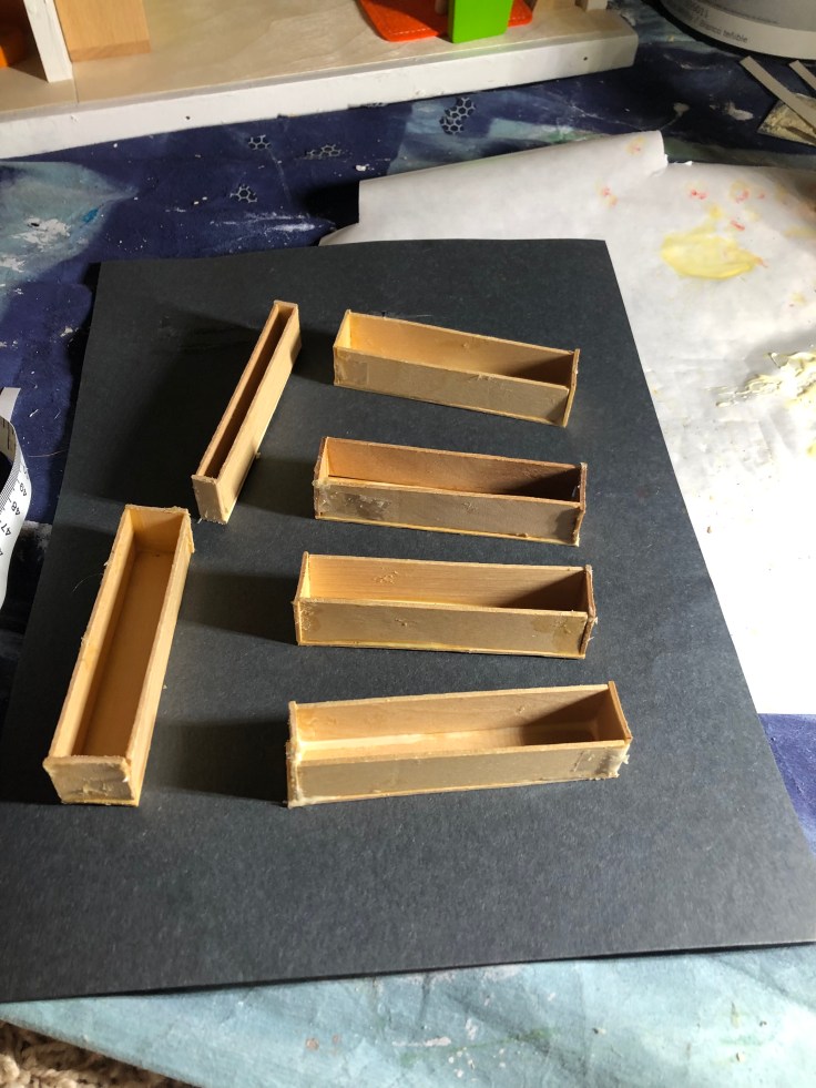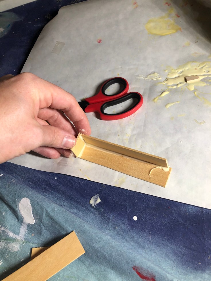 Now I built flower boxes. I desperately wanted flower boxes because I feel my house needs some curb appeal. I had tongue depressors I planned to use. But to say this task was a nightmare is an understatement. I don’t know how many times they fell apart. It was painful but I was determined. I used a TON of wood glue and let them dry an entire week to given them the best chance at survival.